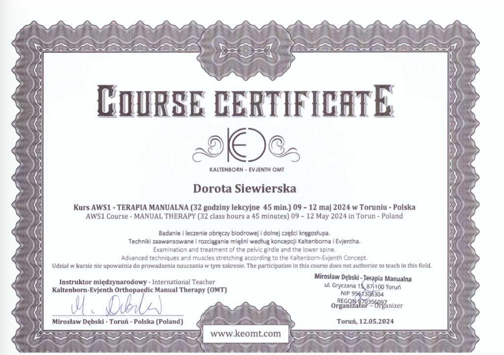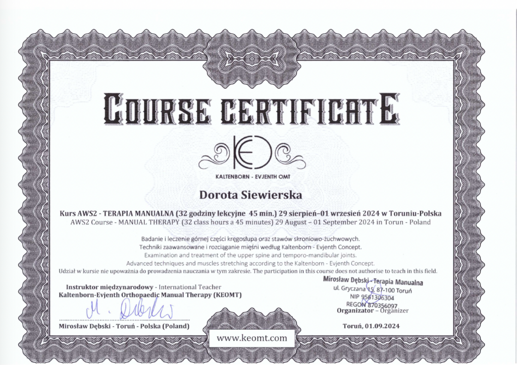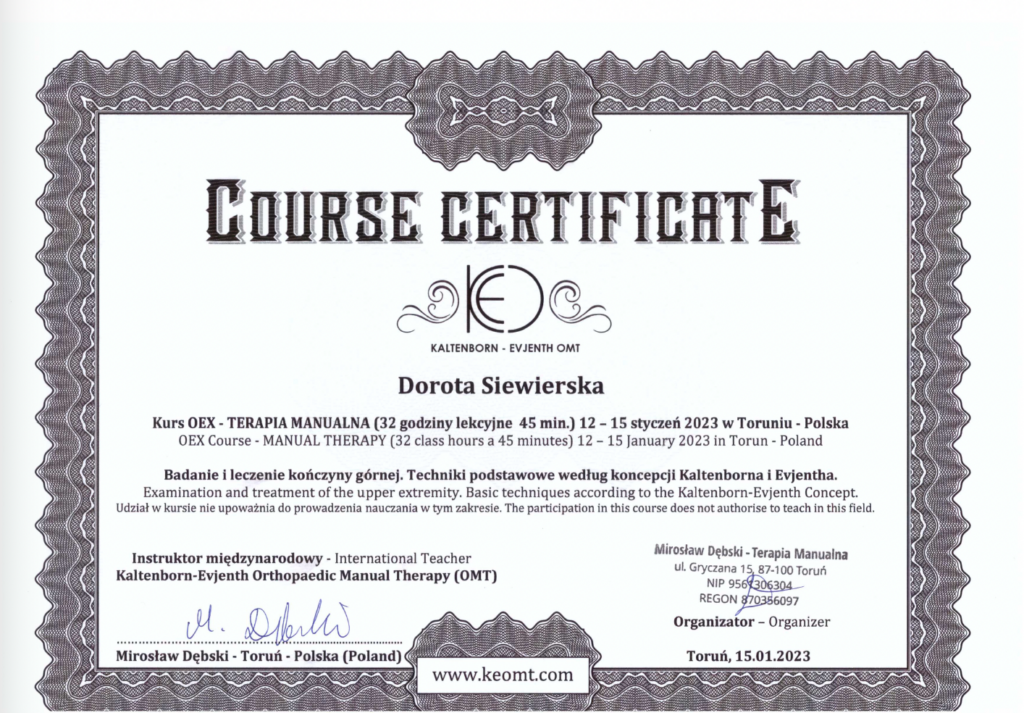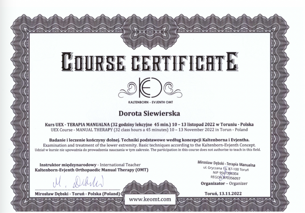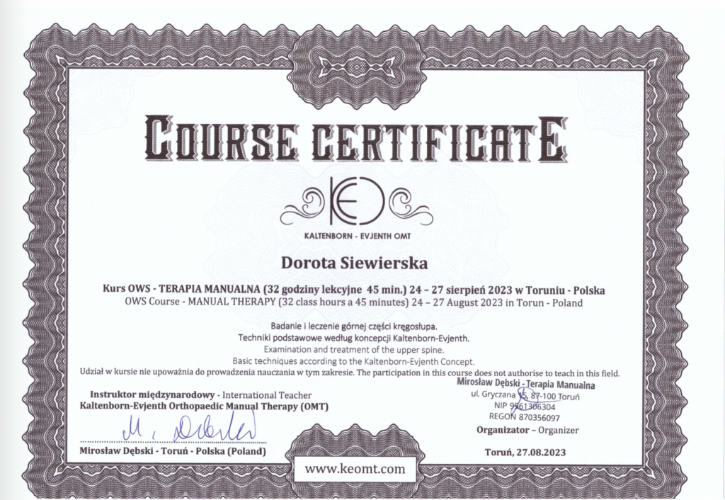 - [2023] OWS Kaltenborn- Evjenth badanie i leczenie górnej