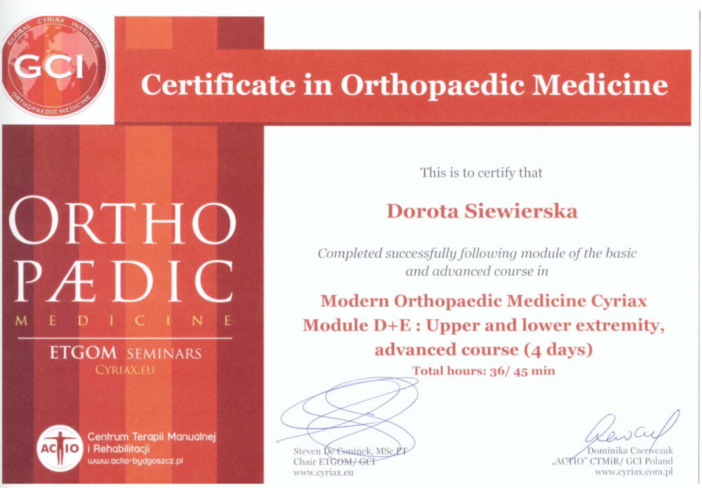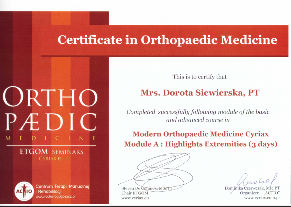 - [2019] Medycyn ortopedyczna według Cyriax’a – moduł a -kończyna górna i dolna poziom podstawowy
