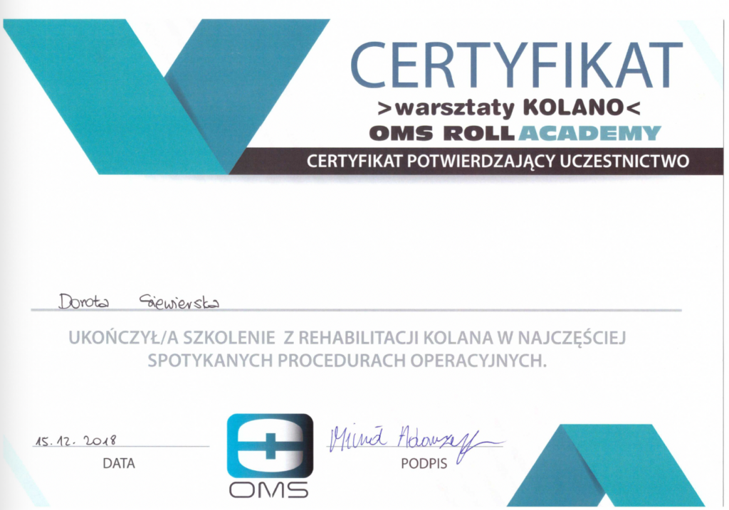 - [2018] Rehabilitacja po zabiegach artroskopowych kolana