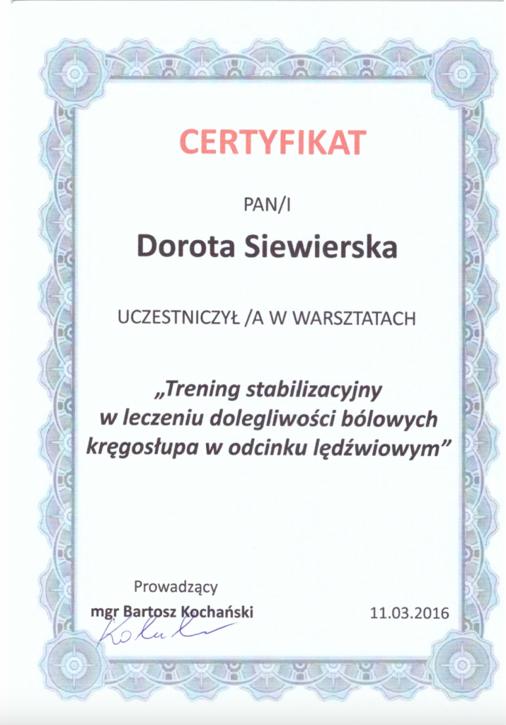 - [2016] Trening stabilizacyjny w leczeniu dolegliwości bólowych