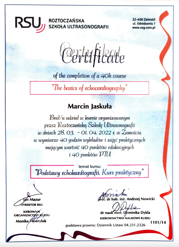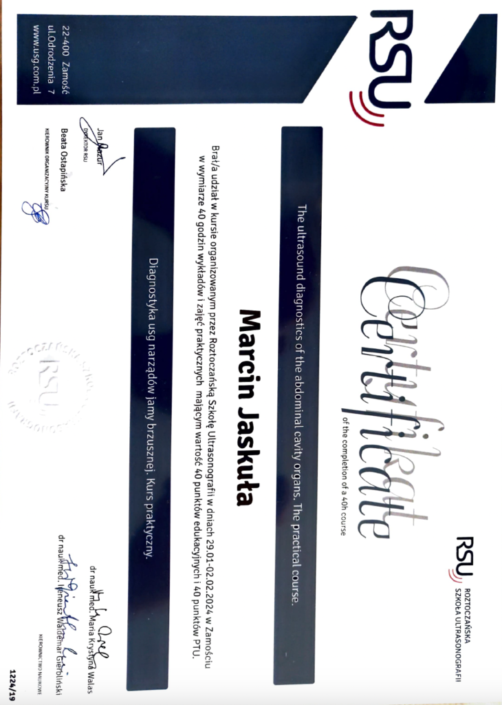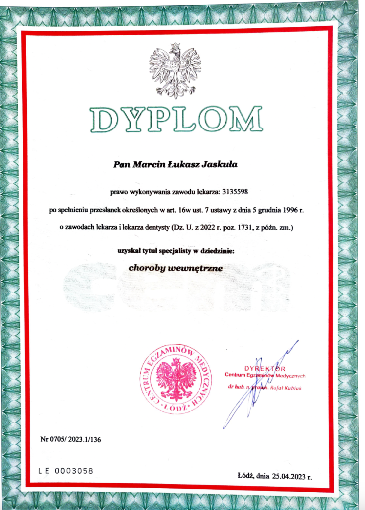 Mam duże doświadczenie w pracy z pacjentami z problemami kardiologicznymi, diabetologicznymi oraz nefrologicznymi. Aktualnie rozpocząłem także szkolenie specjalizacyjne w dziedzinie nefrologii.