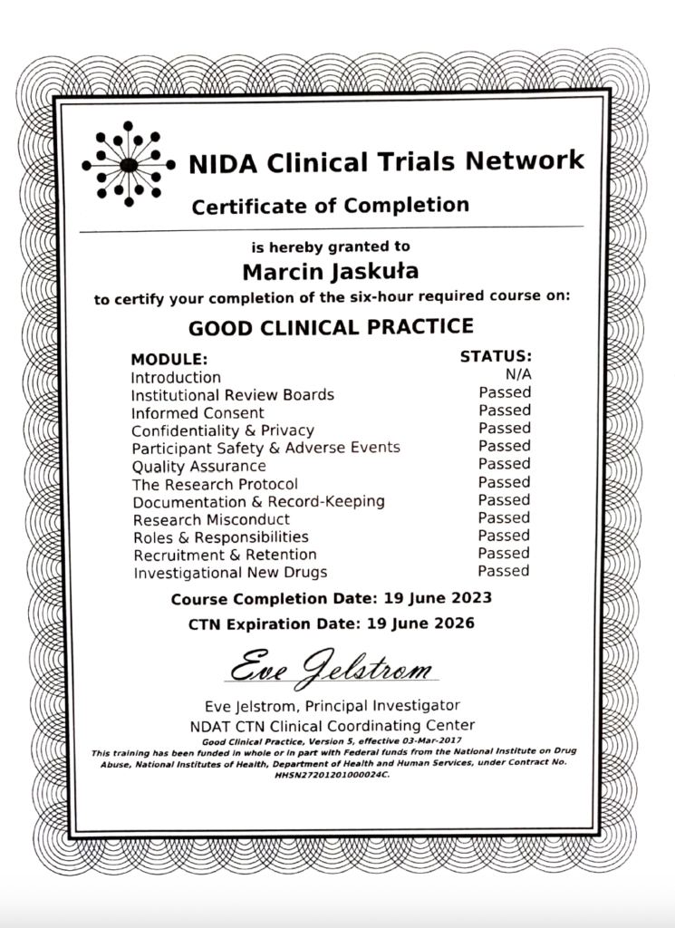 Jestem propagatorem zdrowego żywienia. Posiadam międzynarodowy certyfikat Good Clinical Practice.